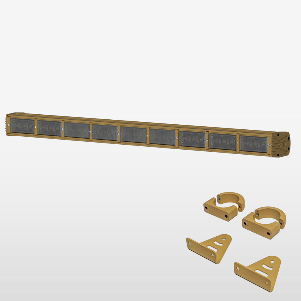 A TOMAR TRX infrared-equipped LED lightbar, in either a 25” version for MRZR¨vehicles and 45” version for MRZR-Alphaª platforms; with color-matched mounting system; adds features needed to accomplish the mission.