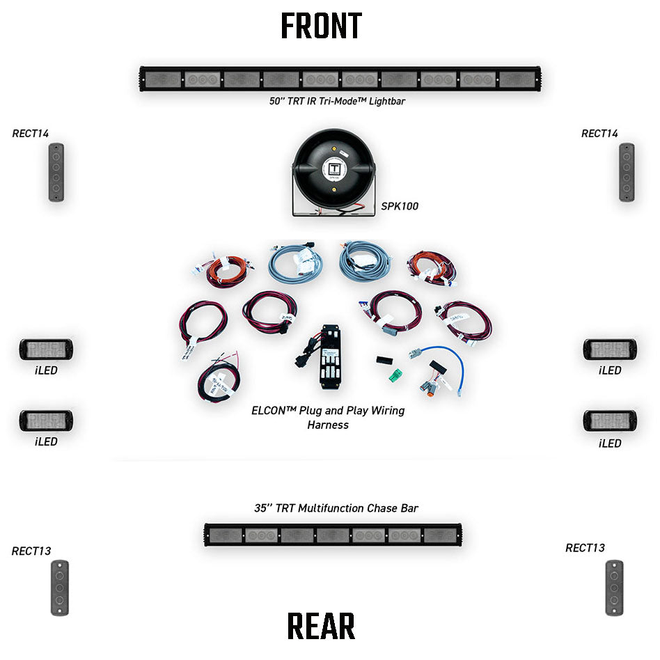 - Front Lower Warning Modules – (2) RECT-14LWP: Compact forward-facing warning modules for additional warning and safety.
